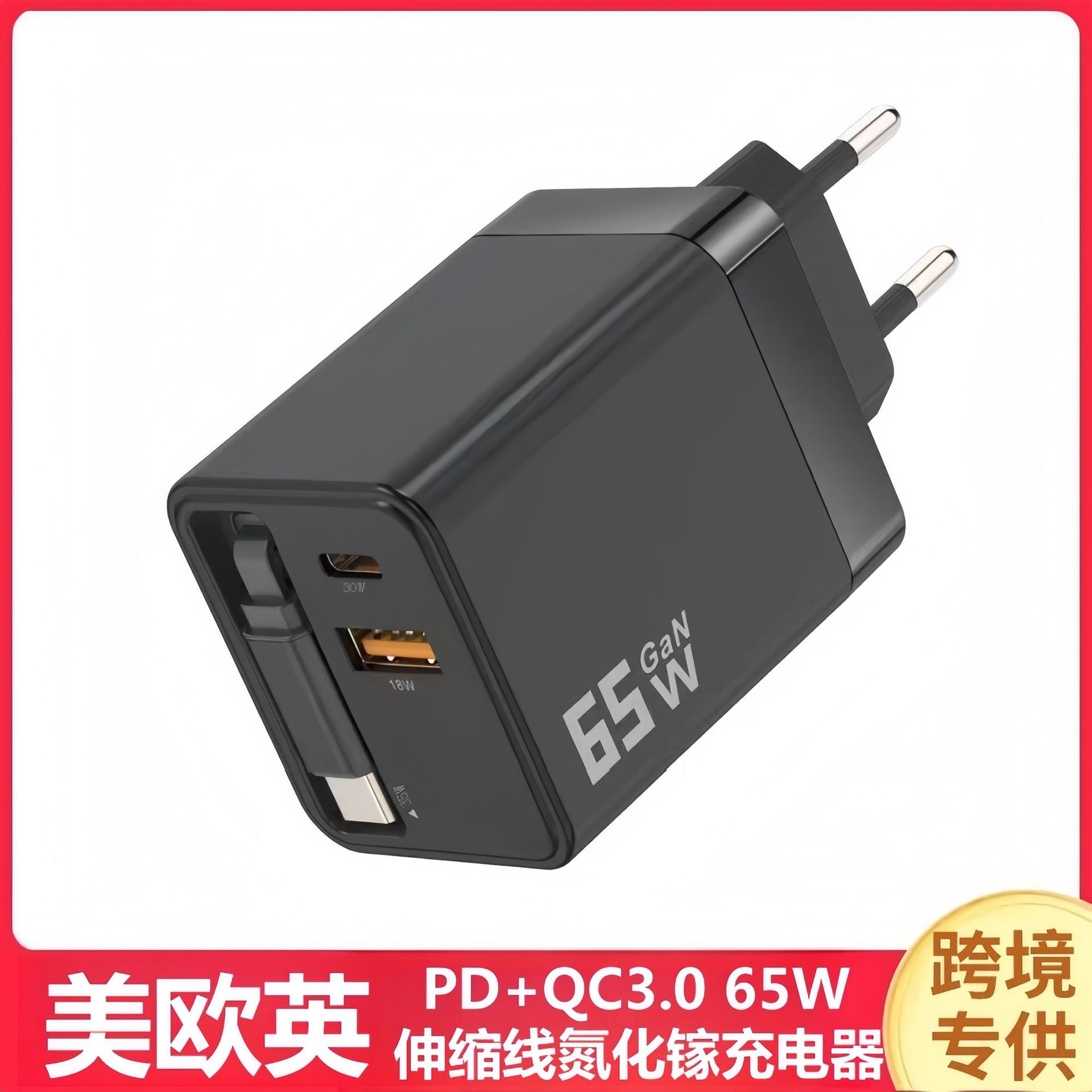 PD65 W Baru Kabel Teleskopik Gallium Nida Charger Kepala Pengisi Daya Dua Mulut untuk Pengisi Daya Cepat Tablet Laptop