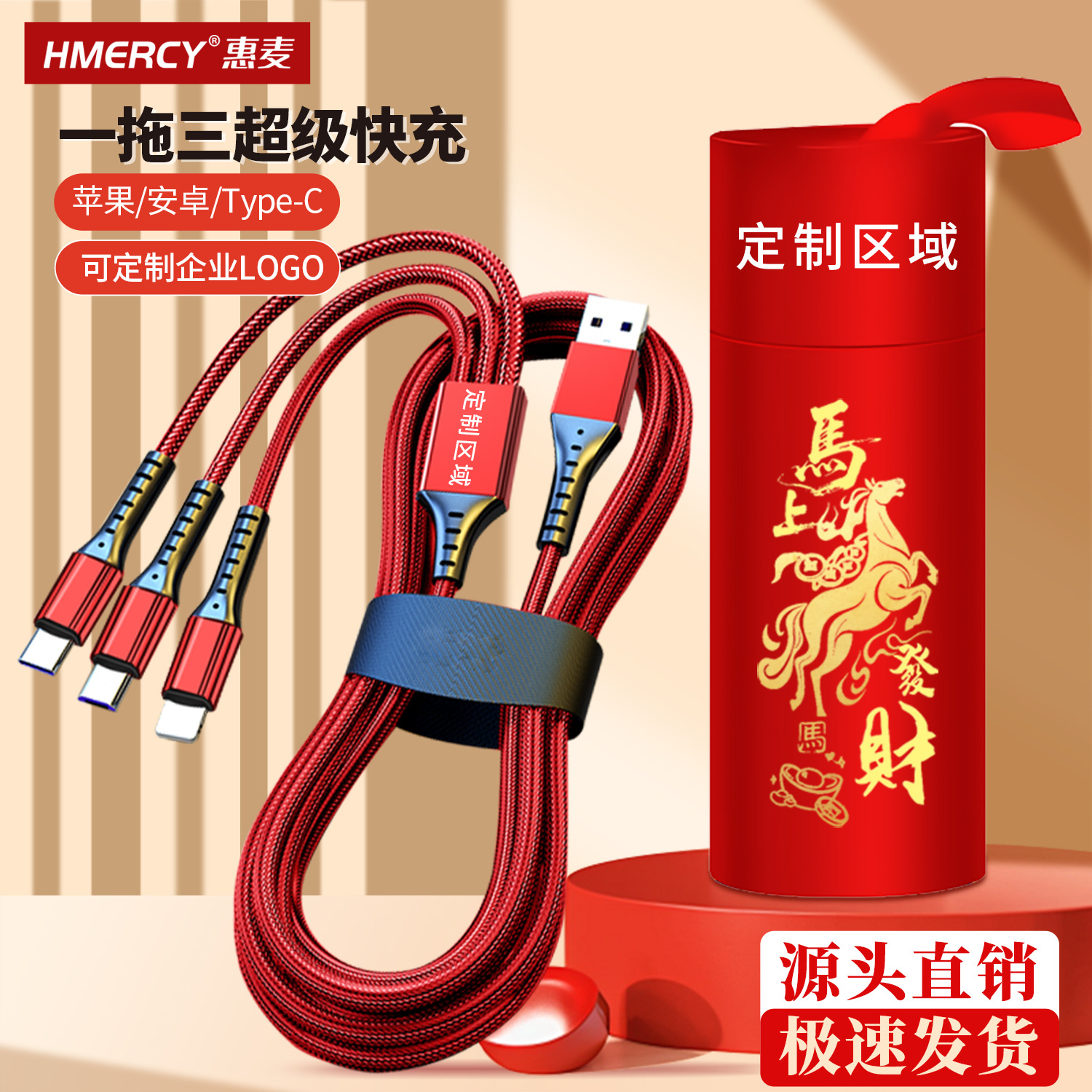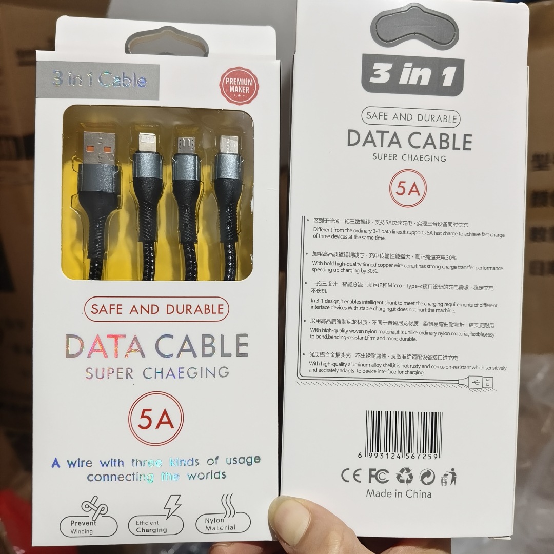 Jaring ikan kabel data tenun satu tarikan tiga 5A pengisian daya super cepat tiga-dalam-satu kabel pengisian Tipe c hadiah cetak logo