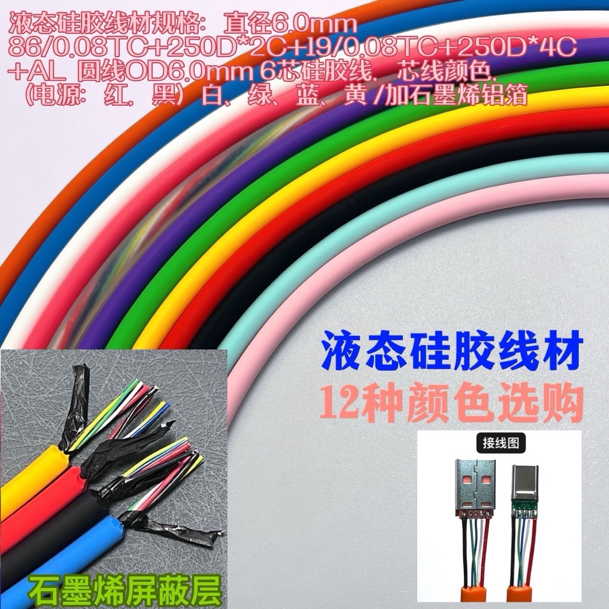 Kabel data TYPEC silikon lembut DIY 8-core USB ponsel PD kabel pengisi daya Cepat 6A Aksesori bahan buatan tangan