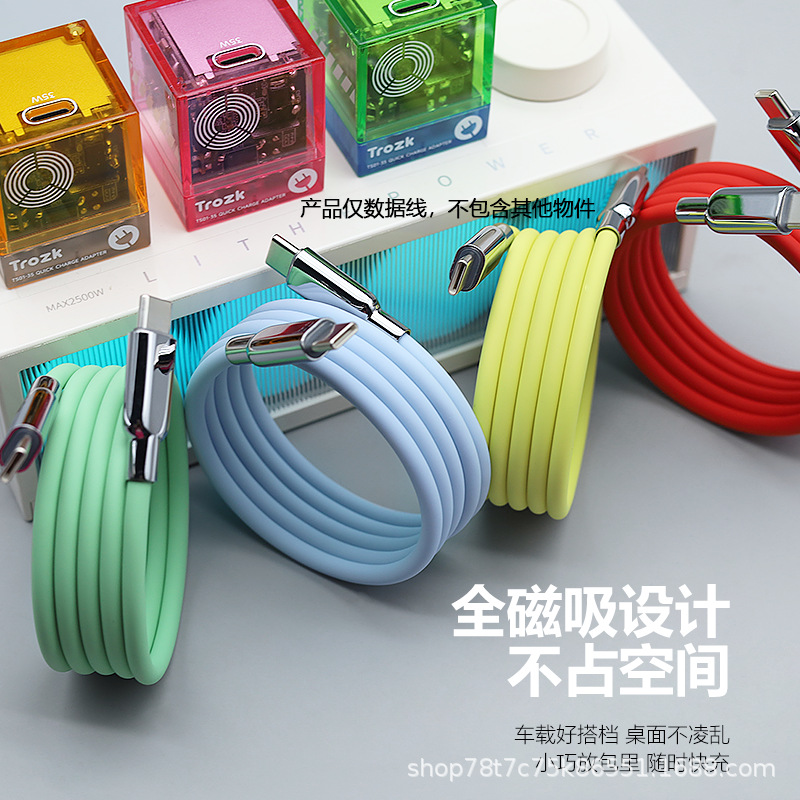 240w Kabel Data Pengisi Cepat Silikon Magnet Paduan Seng 5A untuk Apple PD Android Samsung typec
