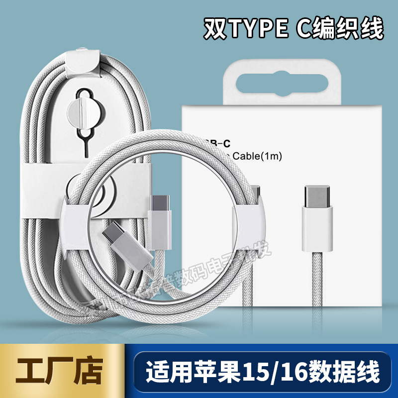 Untuk Apple 16 iphone15 pengisian cepat kabel data PD pengisian cepat dua kepala typec anyaman kabel pengisian grosir