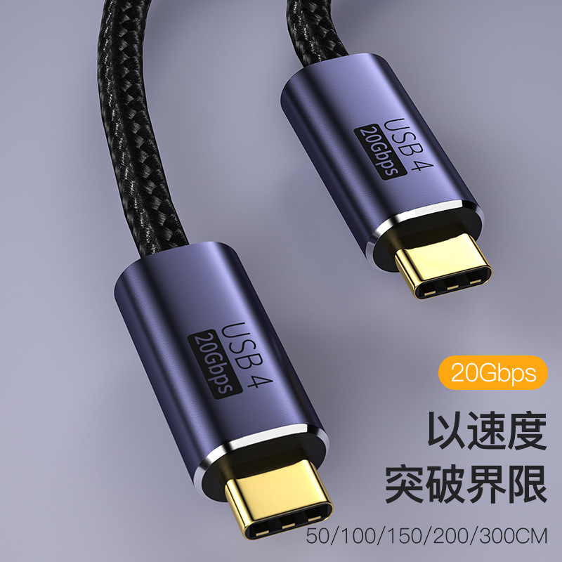 Kabel data USB 4.0 Typec, kabel data pengisian daya Cepat 20Gbps, transmisi kecepatan tinggi 8K HD