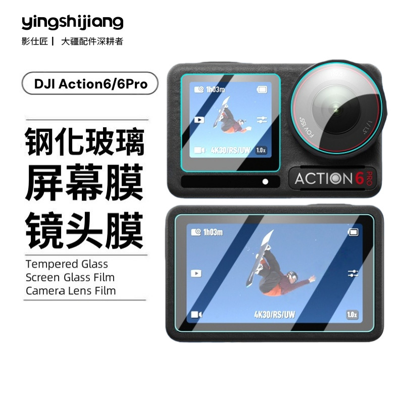 适用DJI大疆 Osmo Action 6屏幕膜Action6运动相机镜头膜钢化膜
