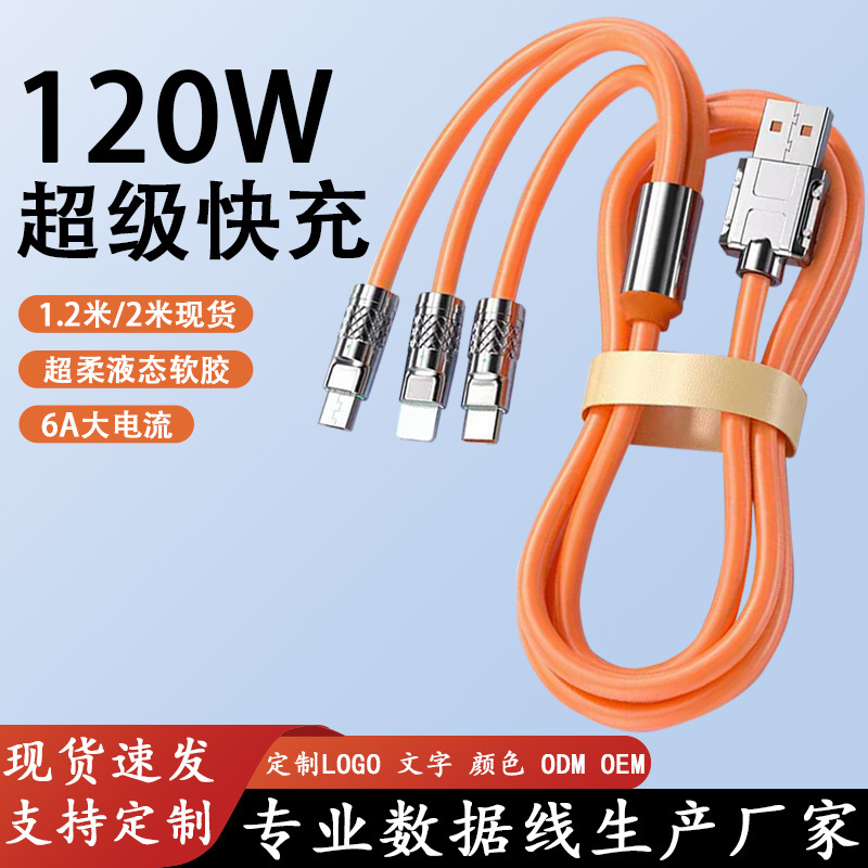 Kabel data pengisian daya Cepat 120W, satu kabel pengisian daya Android Apple Huawei Xiaomi, tiga dalam satu grosir