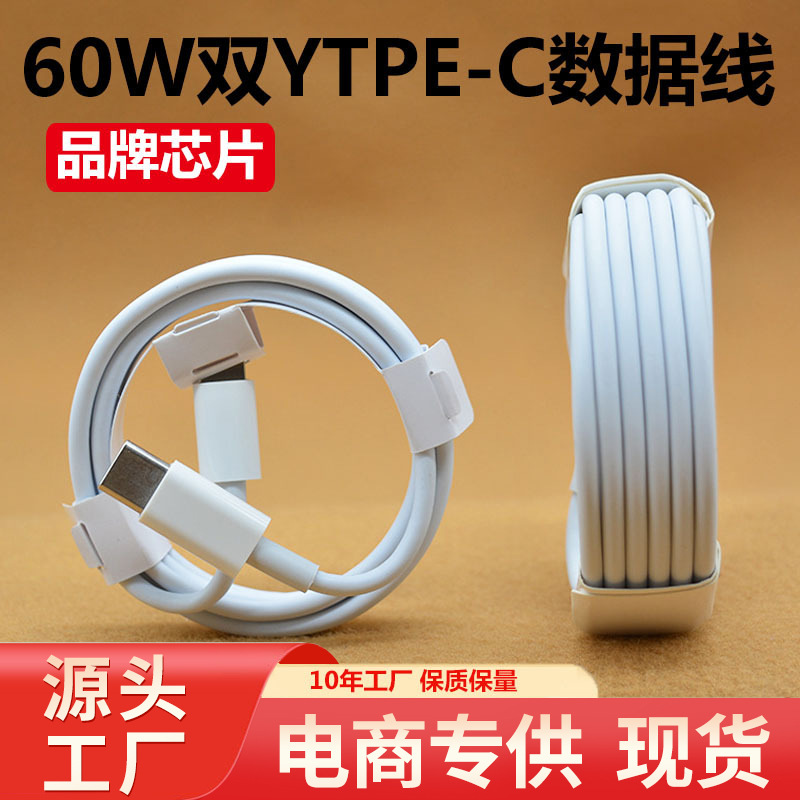 Pinsheng kabel data berkepala ganda tipe-c, kabel data pengisian daya Cepat 60W untuk Apple Xiaomi notebook