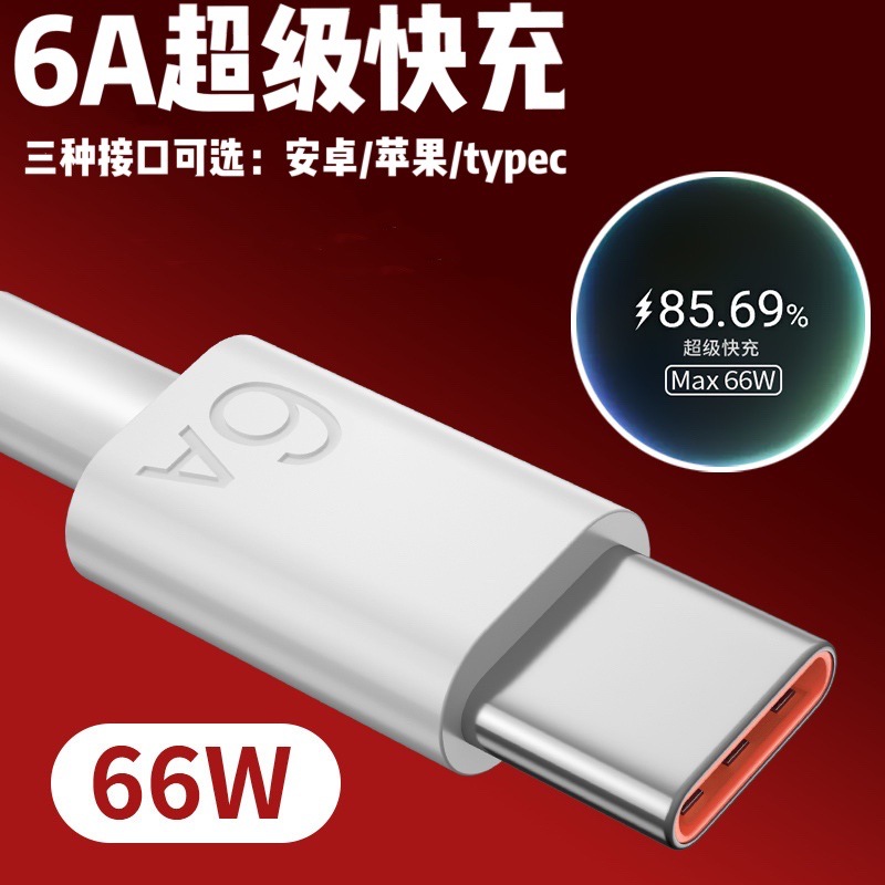 Kabel pengisian daya super cepat 6A, kabel data cepat 66W Android Apple typec cocok untuk Apple/Huawei/Xiaomi