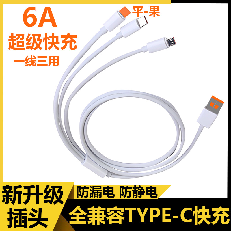 3-in-1 6A kabel data pengisian daya super cepat untuk Apple Huawei Type-c kabel pengisian daya 120W