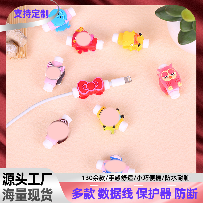 Grosir Pabrik pelindung kabel data ponsel kartun pelindung kabel earphone penutup pelindung kabel pengisi daya anti rusak lem fleksibel silikon