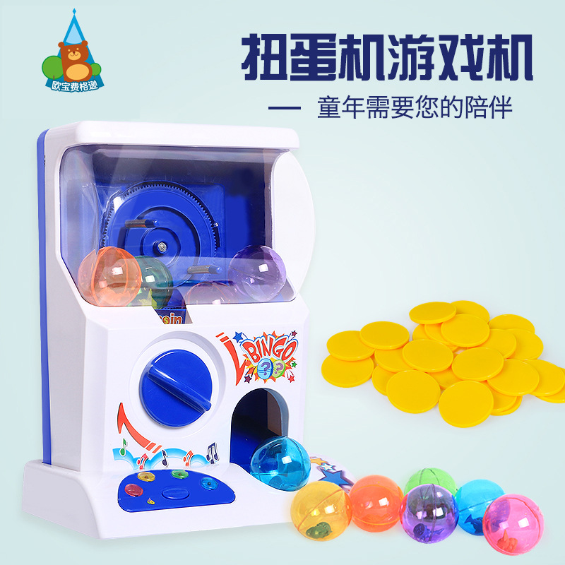 Cross-border Oubao mesin pemutar telur mini, mainan anak-anak rumah tangga kecil, mesin permainan hadiah koin permen musik