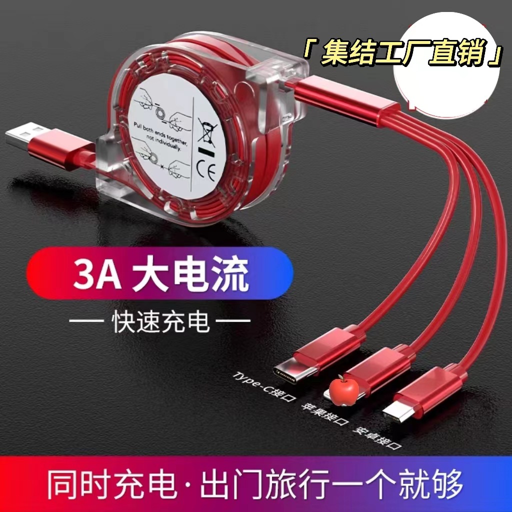 Kabel data satu ke tiga dapat ditarik, multi-fungsi ponsel pengisian cepat tiga dalam satu kabel pengisian daya Tahun Baru hadiah grosir