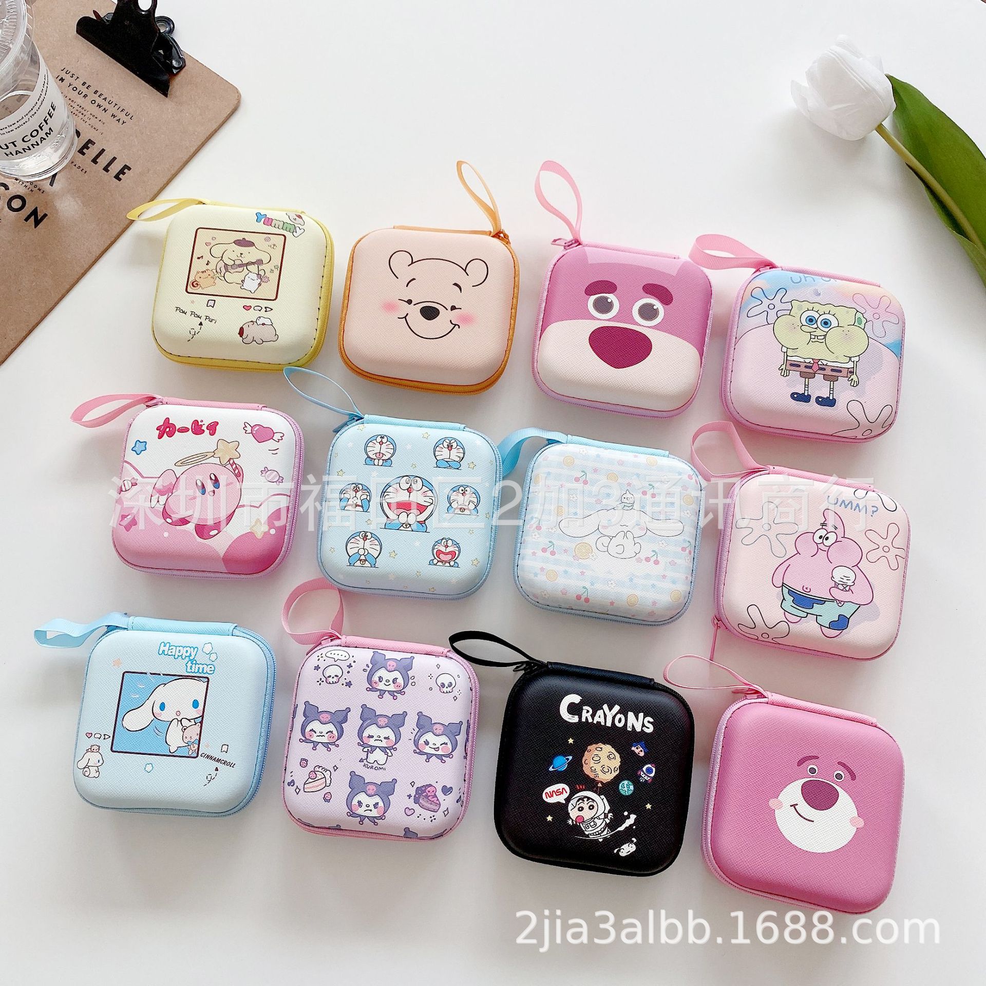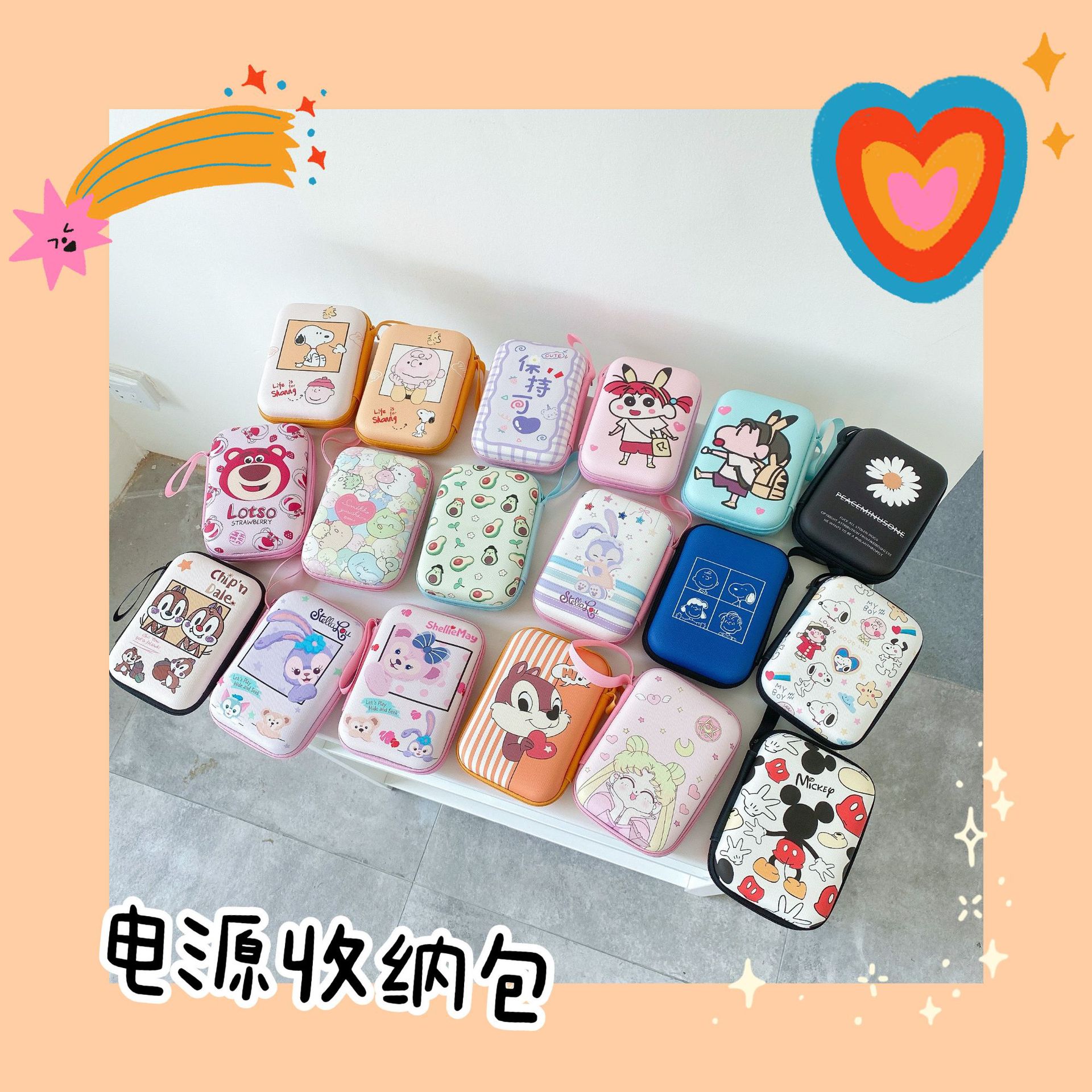 卡通耳机数据线收纳包充电器收纳盒硬币手拿包零钱包中号方包手绳