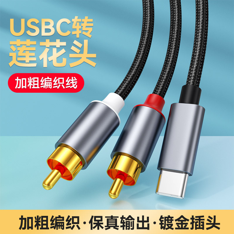 Typec kabel adaptor audio RCA kepala Lotus untuk ekstensi ponsel Android colokan ganda audio kabel adaptor speaker