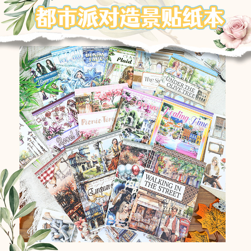Stiker pemandangan tempat wisata Eropa, bahan buku panduan, dekorasi buku harian perjalanan hewan peliharaan, buku stiker buku panduan kreatif