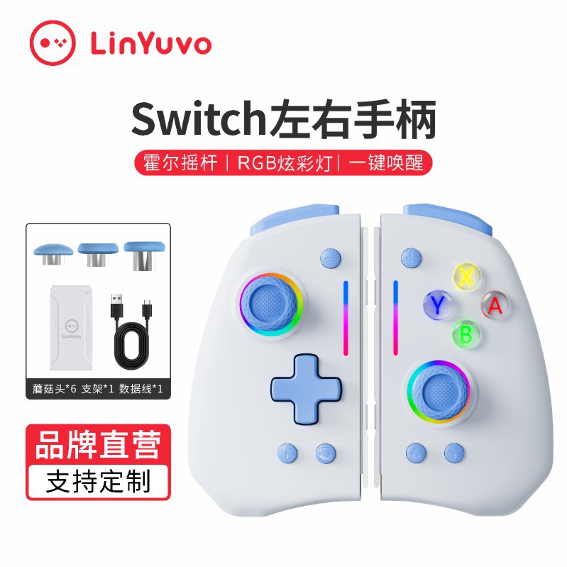 LinYuvo Switch Joycon Pegangan Bluetooth Kiri dan Kanan Warna-warni Lampu RGB Model Hall