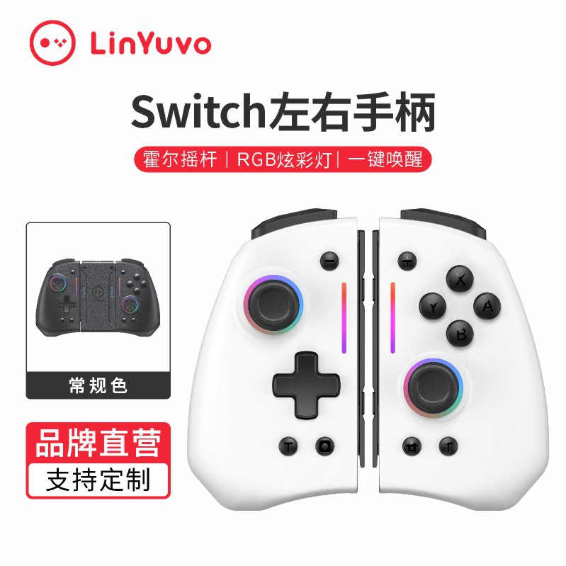 LinYuvo Switch Joycon Pegangan Bluetooth Kanan Kiri dan Kanan Warna-warni Lampu RGB Model Hall Tombol Punggung Makro