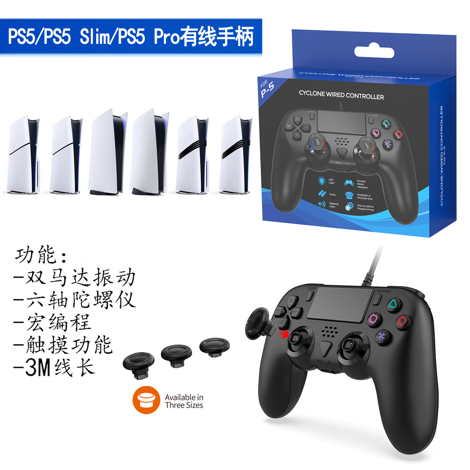 Pegangan Gaming Berkabel PS5slim Pegangan Universal Host PS5slim Aksesori Pemrograman Makro PS5