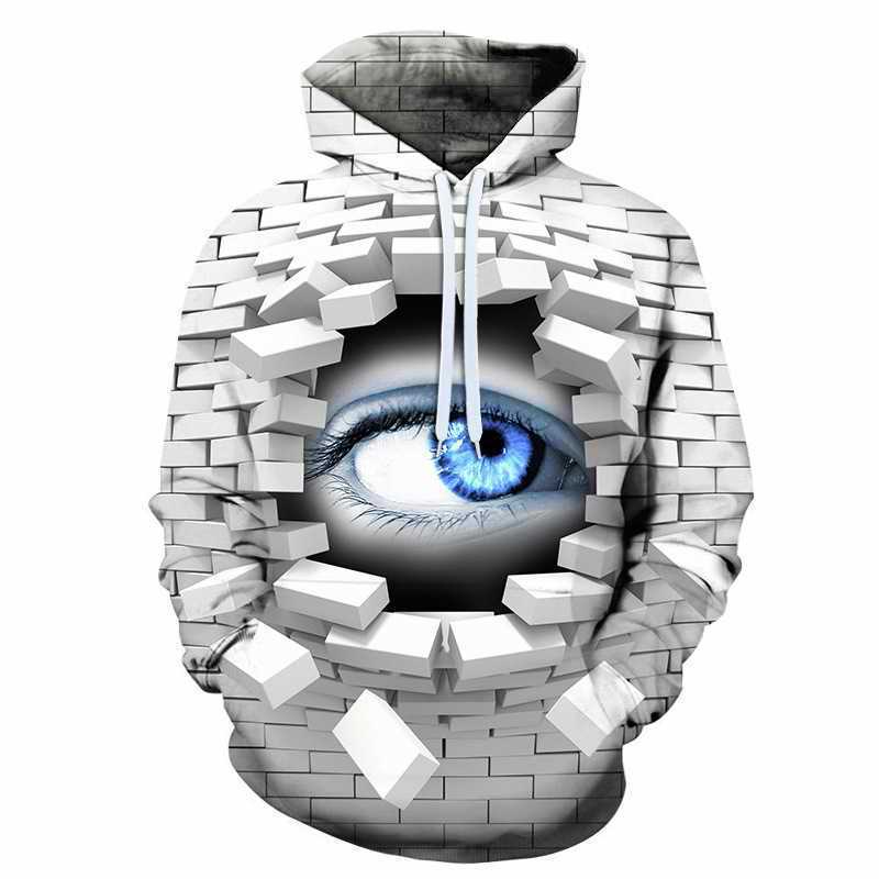 Amazon kesalahan visual geometris sweater berkerudung pria mata bata 3D pakaian efek Musim Semi dan Musim Gugur hoodie