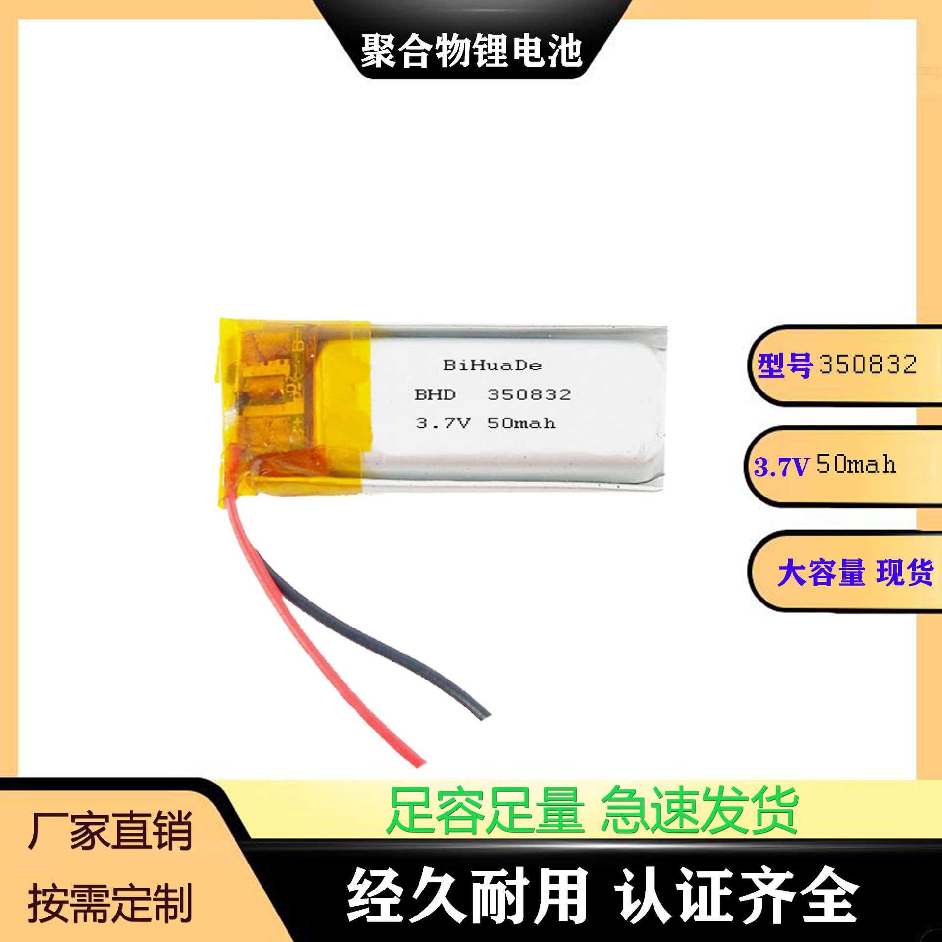 350832 3.7V 50mAh cocok untuk pena rekaman mikro headset Bluetooth kacamata 3D