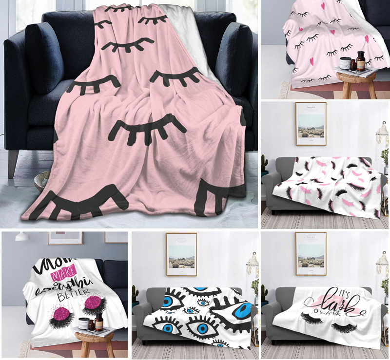 Selimut tidur siang flanel cetak digital 3D mata tertutup bulu mata kartun kustom selimut tidur siang AC grosir