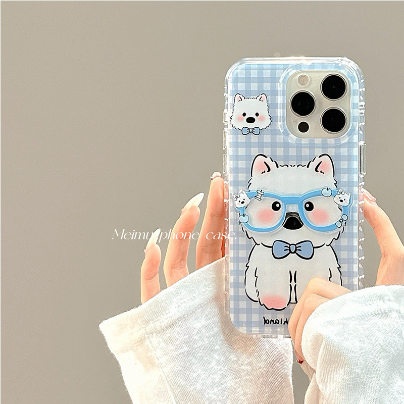Casing Ponsel Apple 16Promax Cocok untuk Anak Anjing Siegaok Warna Biru Casing Ponsel Model Baru 16 Kartun Lucu 16Pro Gadis 14PM 15Pro Tingkat Tinggi Rasa 13 Pro Semua Terbungkus