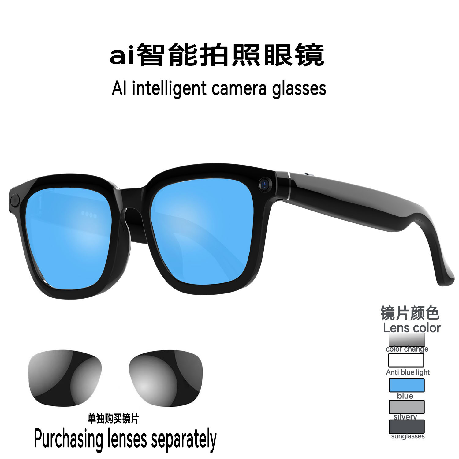 Kacamata tembak lintas batas dengan transmisi WIFI, fotografi olahraga dan perekaman video, kamera dengan definisi tinggi 8 juta piksel, anti-goyang, terjemahan percakapan.