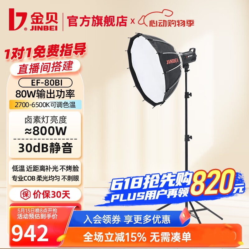 JINBEI EF-80/80BI Adjustable Color Color Light Light Kamera Kamera Fotografi Dalam dan Luar Ruangan Mobile