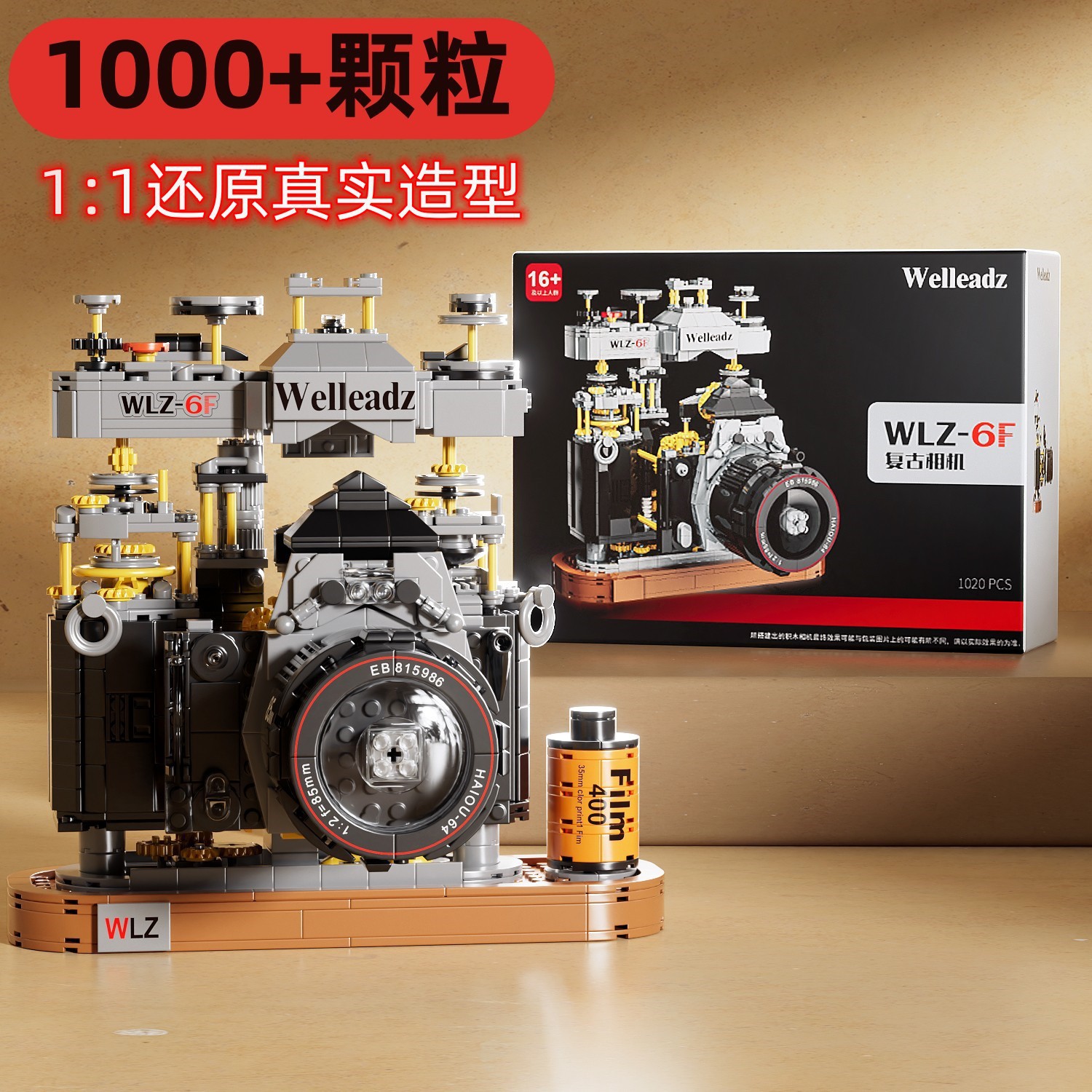 Cocok dengan Lego WLZ-6F SLR retro kamera simulasi model digital partikel kecil mainan rakitan balok bangunan grosir