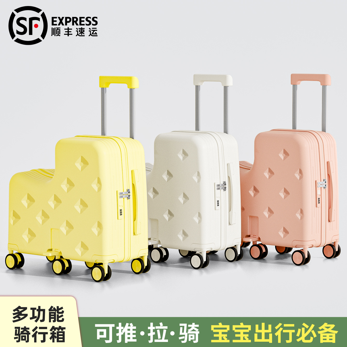 新款儿童行李箱拉杆箱20寸大容量可坐可骑登机箱万向轮6轮旅行箱