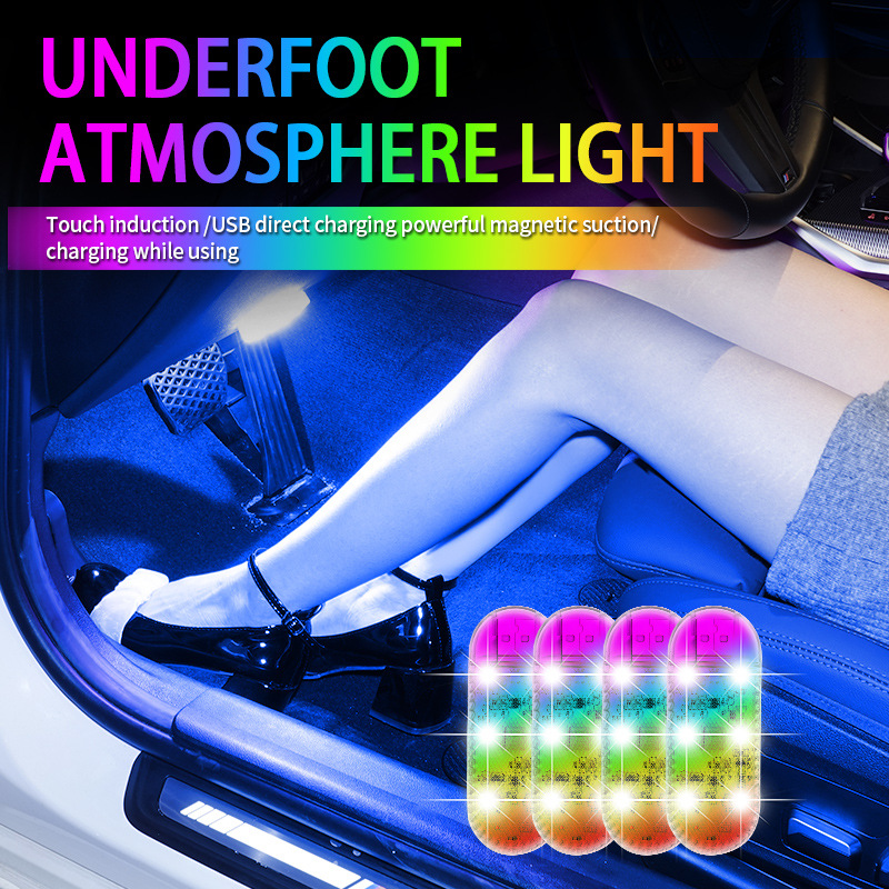 Lampu Sentuh Mobil Lintas Batas Lampu Kaki Nirkabel USB Lampu Pesawat Berkilauan Lampu Cadangkan Warna-warni Dekorasi Polisi
