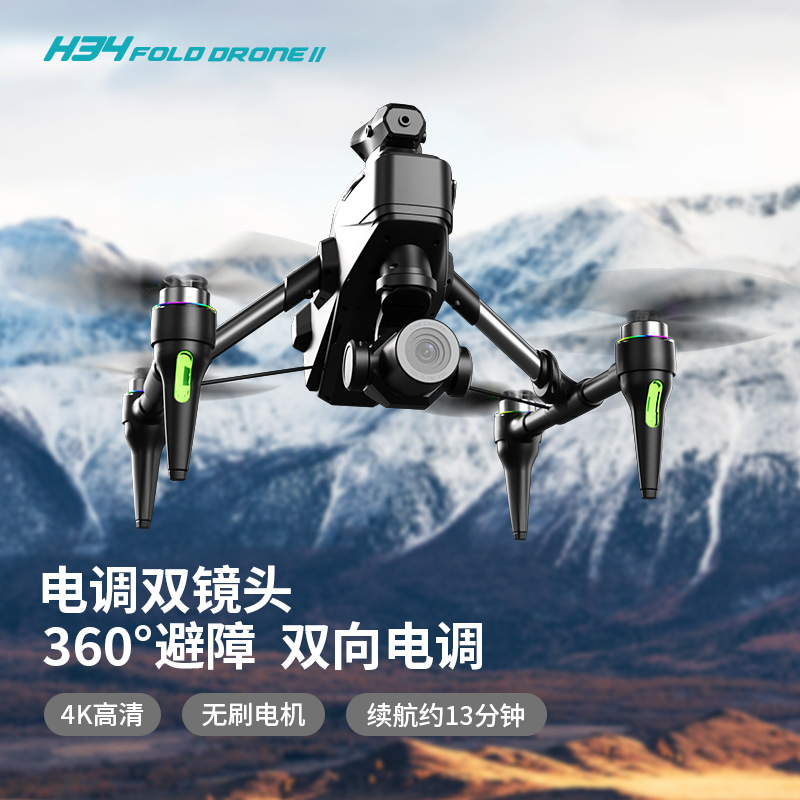 Cross-Border H34 Drone Tanpa Brushless Aliran Profesional Penangkal Hambatan Penerbangan Pesawat Empat Axis Hover Remote Control Pesawat Mainan