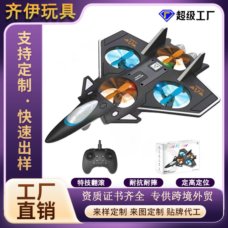Pesawat mainan drone remot kontrol busa lintas batas, jet tempur empat sumbu, tahan benturan, aksi udara, lampu menyala, dapat diisi ulang, mainan anak laki-laki