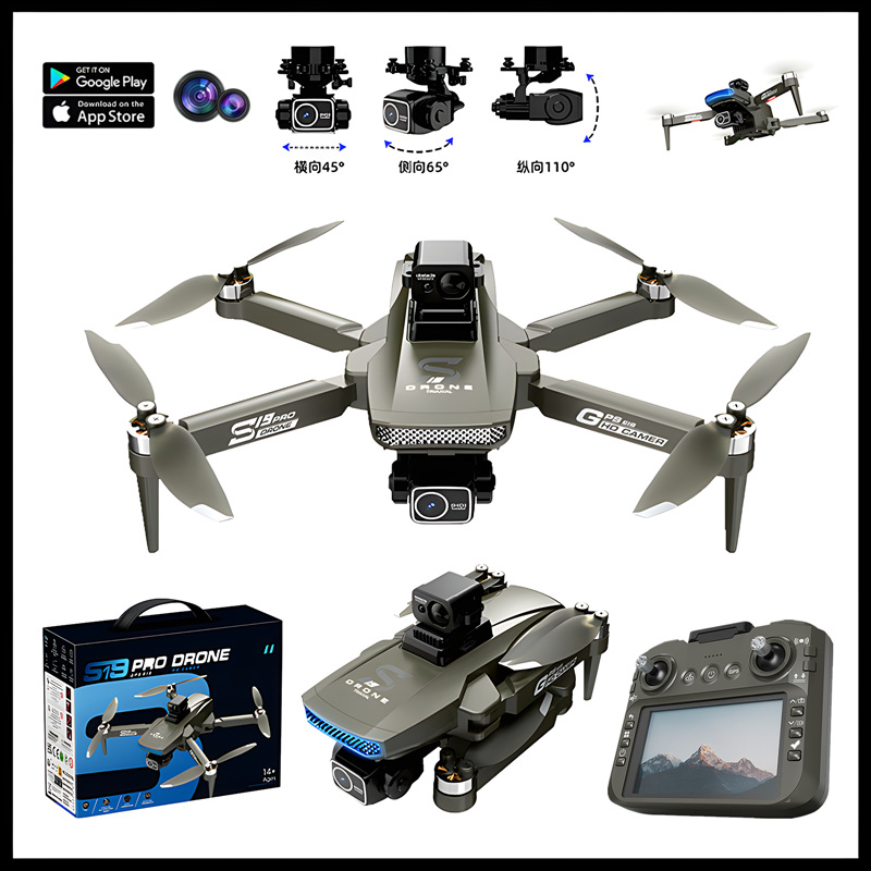 Cross-Mirror Drone S19PRO HD Foto Udara Tiga Axis Gps Posisi Kembali Layar 4,5 Inch Kontrol Daya Panjang Masa Pakai