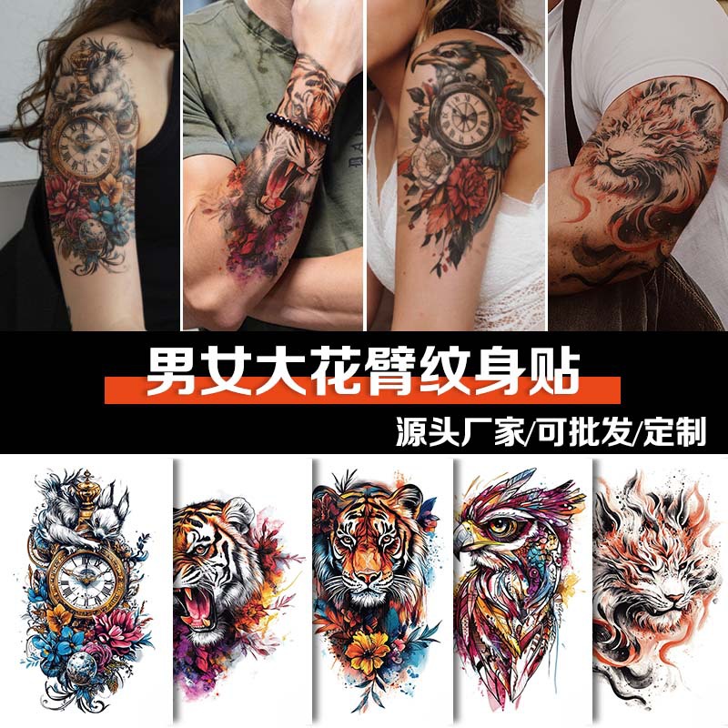 Stiker tato temporer motif hewan bunga untuk lengan, tahan air, motif singa harimau cheetah, penutup sementara semi permanen, tahan air dan tahan lama