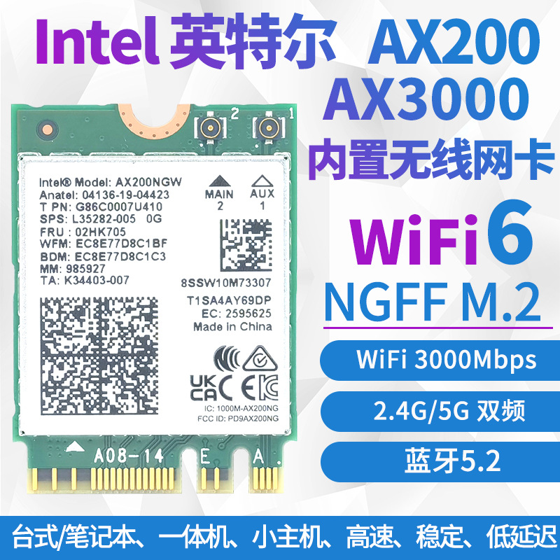 AX200NGW WIFI6 kartu jaringan nirkabel gigabit, dual-band 5G 3000m built-in, kartu jaringan nirkabel gigabit NGFF Bluetooth 5.1