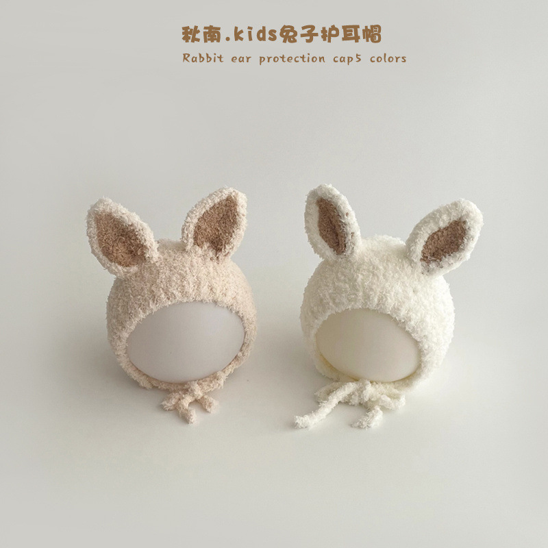 Topi rajut bayi, topi rajut telinga kelinci lucu tebal musim gugur musim dingin 2024