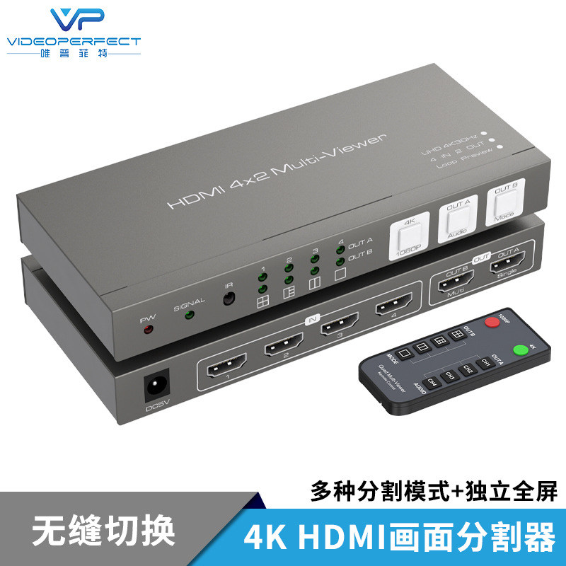 HDMI分屏器四进一出二出4K电脑hdmi画面分割器4口高清无缝切换器