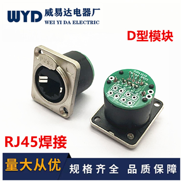 D型卡龙网络插座LED大屏音响RJ45网口数据模块直脚水平PCB焊接型