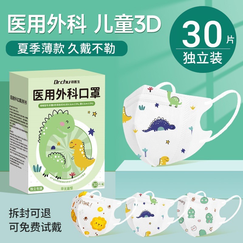 Kartun Dokter Anak Ukuran Anak Masker Bedah Medis 3D Sekali Pakai Anak Laki-laki dan Perempuan Model Musim Panas