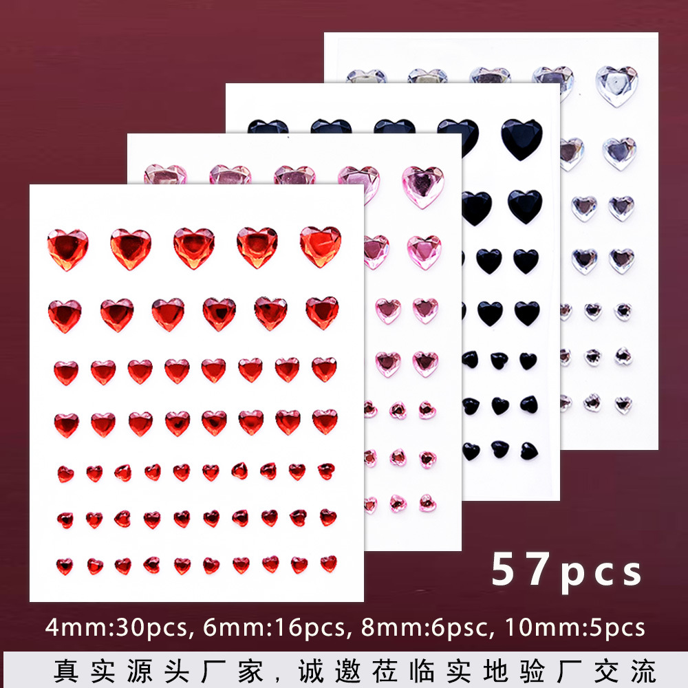 Stiker kristal permata cinta warna-warni anak perempuan berpakaian bahan kristal berlian berkilau tiga dimensi stiker buatan tangan