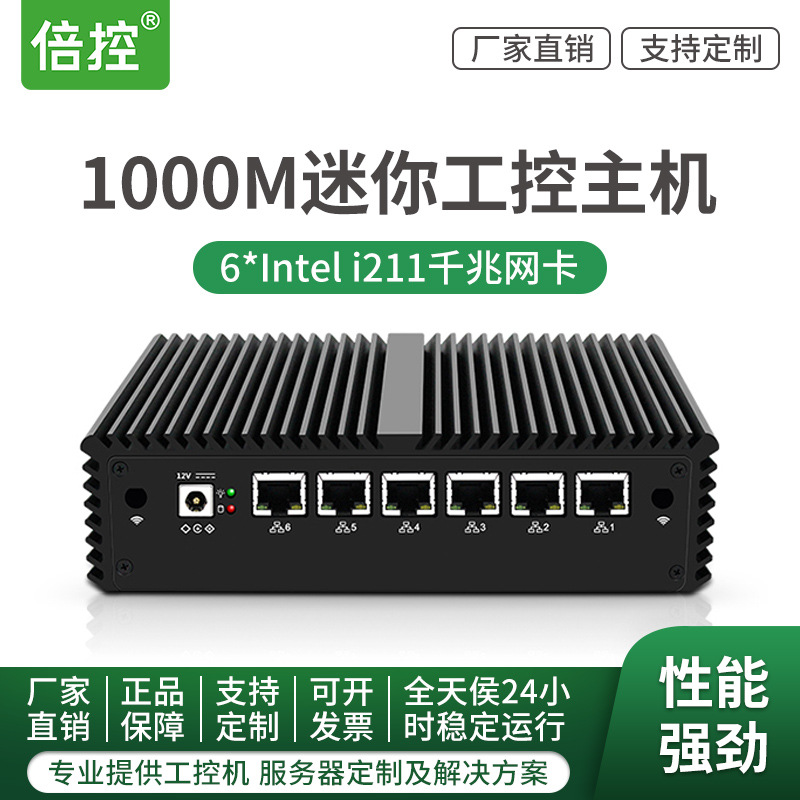 Kontrol ganda Pentium 4415U Enam Jaringan Gigabit Router Lunak i3-7100i5-7200 Mesin Kontrol Industri Tertanam 10