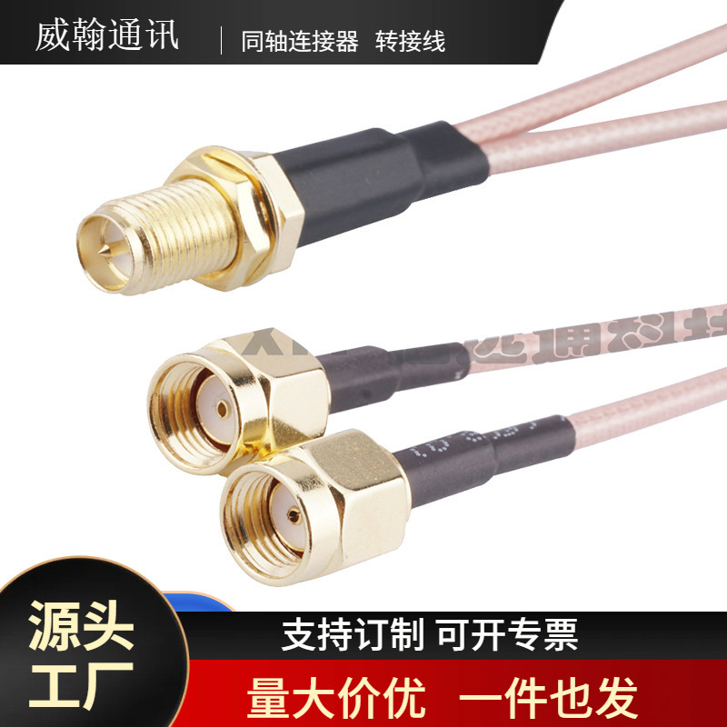 SMA母转SMA公头反接 SMA公转母 一分二连接线 SMA一分二 长度可订