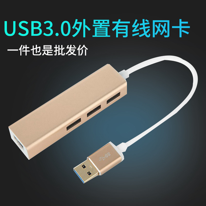 Kartu jaringan kabel eksternal USB 3.0 ke RJ-45 paduan aluminium kartu jaringan gigabit USB 3.0 dengan HUB tiga port