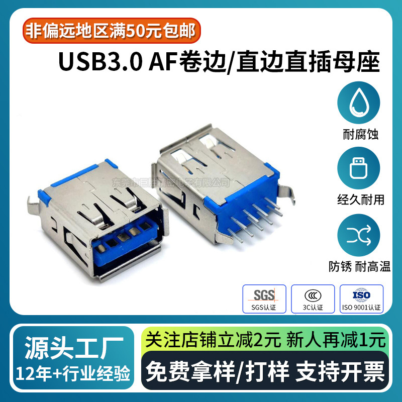 Sumber produsen konektor USB 3.0af15.0 lengkung steker lurus curling/tepi lurus 9p basis perempuan
