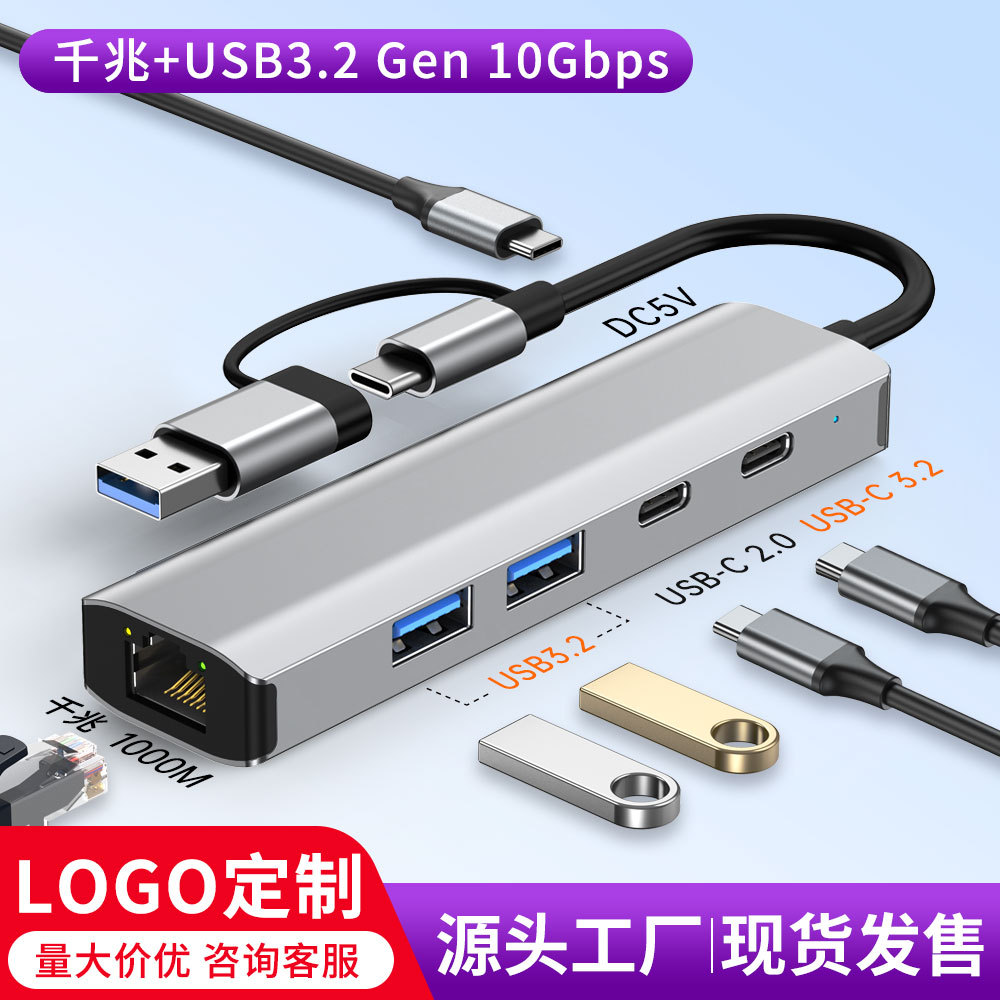 Penjualan luar negeri jaringan tipe-c transfer port Gigabit rj45HUB 3.2 10G dua dalam satu USB Gigabit kartu jaringan