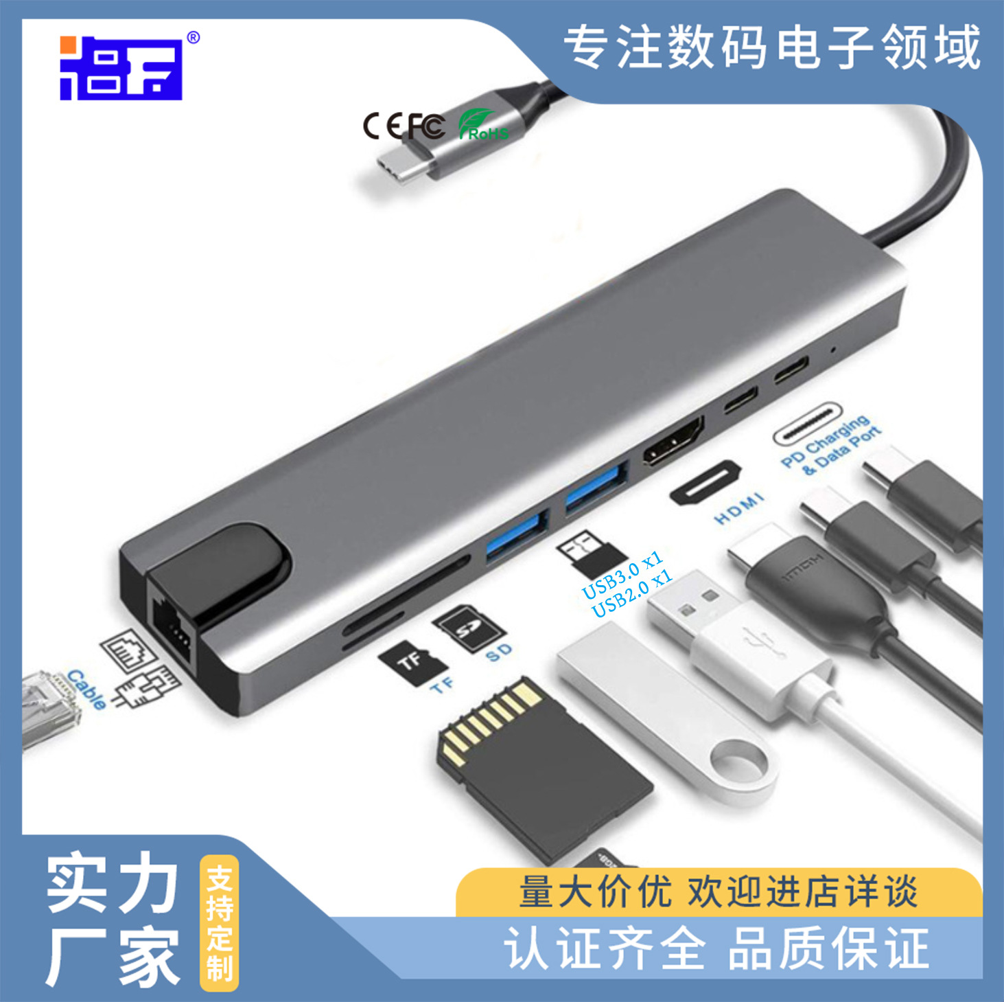 Stasiun Dok Typec Delapan Dalam Satu Ke Konverter HD4k Kartu Jaringan Gigabit Komputer Usb3.0 Extender Multi-antarmuka