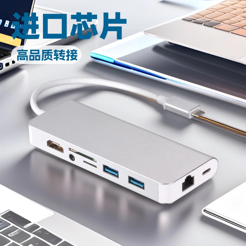 Typec ke HDMI HD 4K Tampilan Kartu Jaringan USB3.0 Gigabit Kartu Pembaca Kartu HUB Delapan dalam Satu Konverter Memperluas Dock