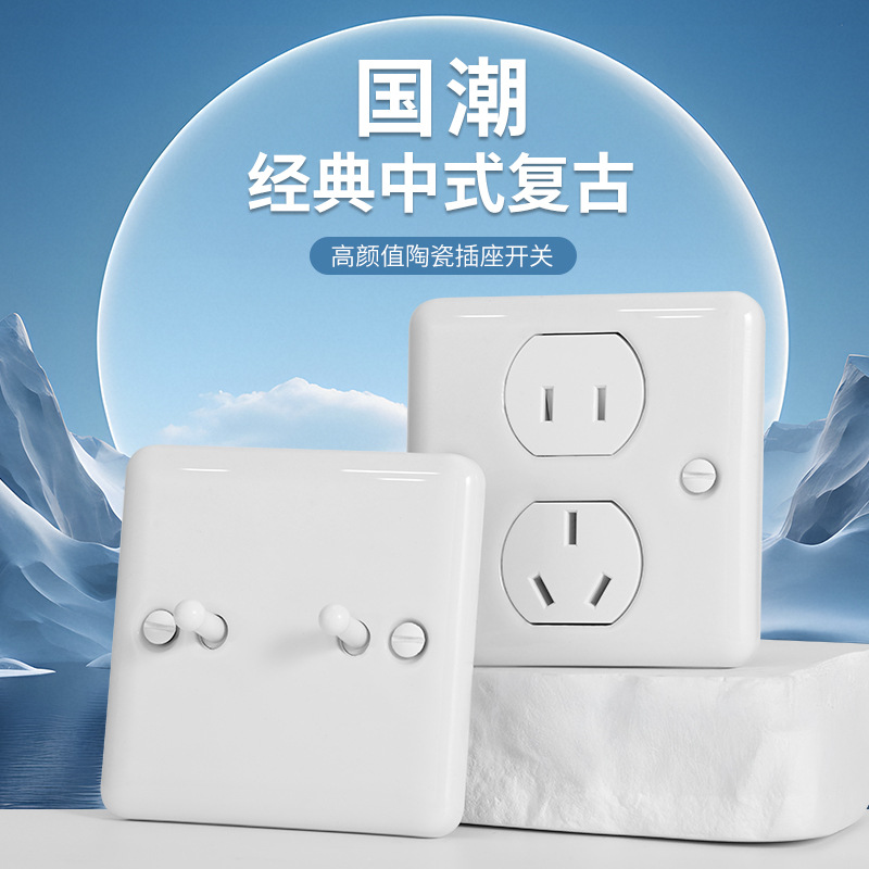 Berlin Tipe 86 Retro Gaya Tiongkok Retro Soket Switch Homestay Apartemen Dua Tiga Pasang USB Lima Lubang Tren Nasional