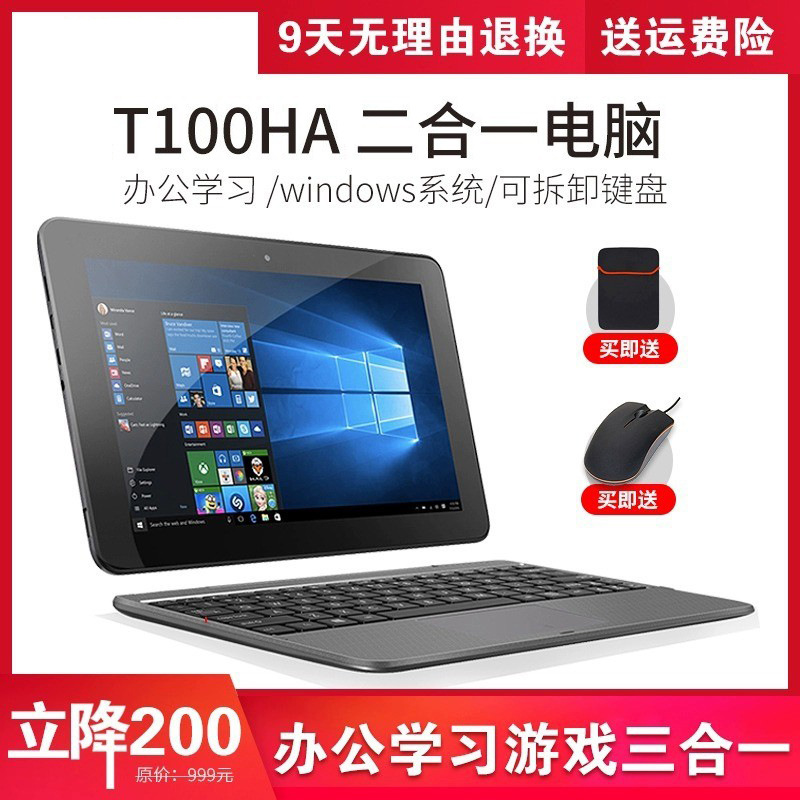 Komputer tablet 2-in-1 T100HA10-inci dengan keyboard, standar Windows, antarmuka USB besar