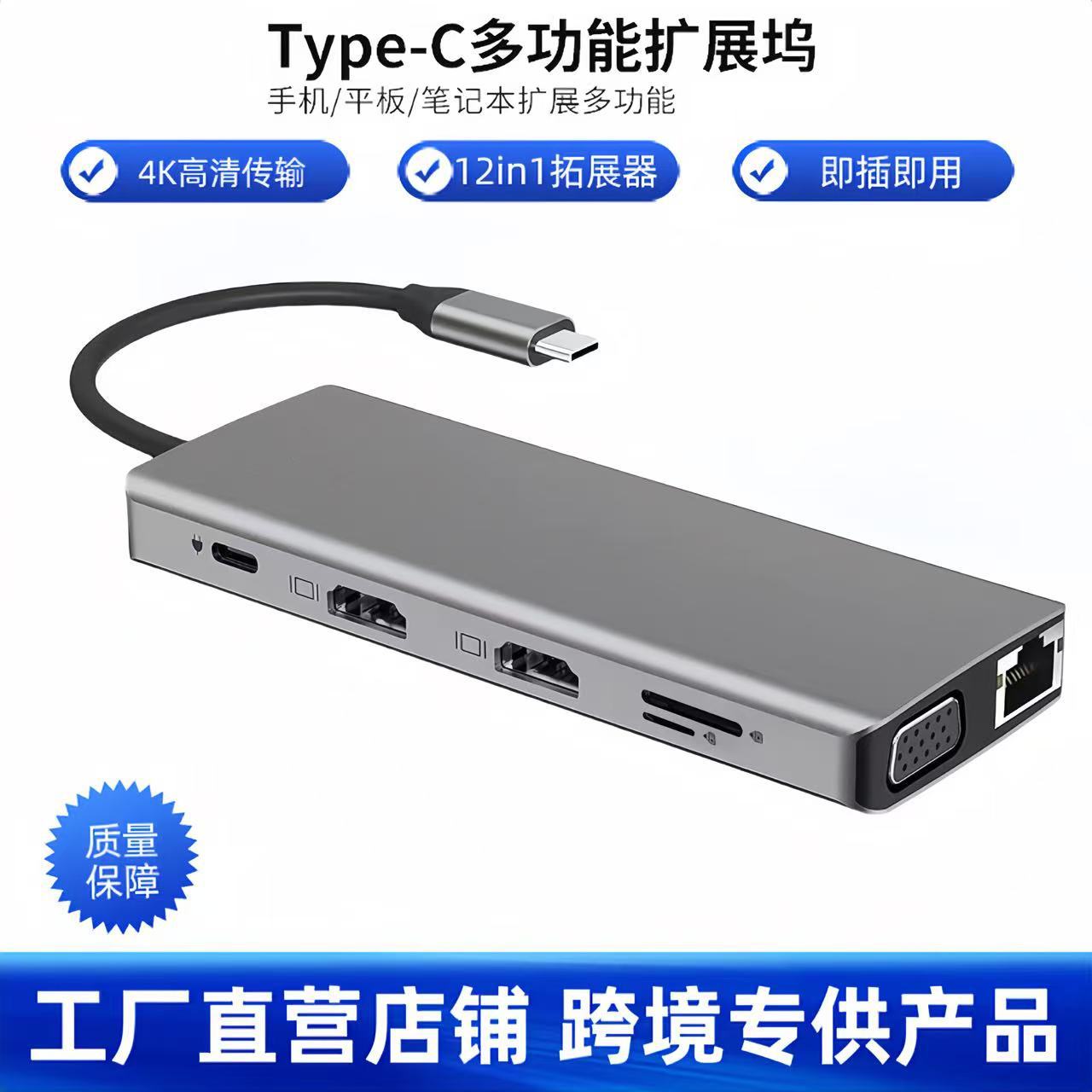 Cross-Border Type-c Ekspansi Dock 12-in-1 Dock Ganda hdtvMTS Multi-Screen Gigabit Netport Pabrik Grosir