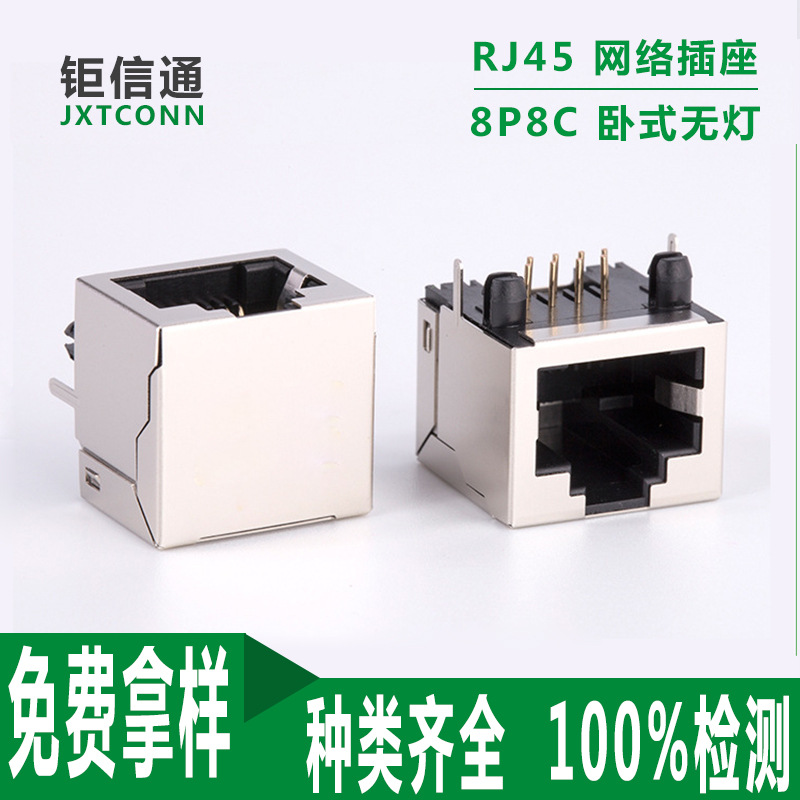 RJ45 konektor soket jaringan 8P8C tanpa lampu tanpa peluru dengan penutup pelindung horizontal 90 derajat RJ56 antarmuka semua termasuk